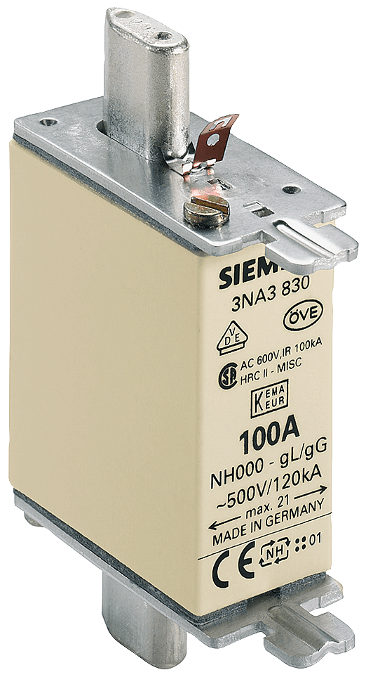 SIEMENS - Cartuccia fusibile NH, NH000, In: 100 A, gG, Un AC: 500 V, Un DC: 250 V 3NA3830