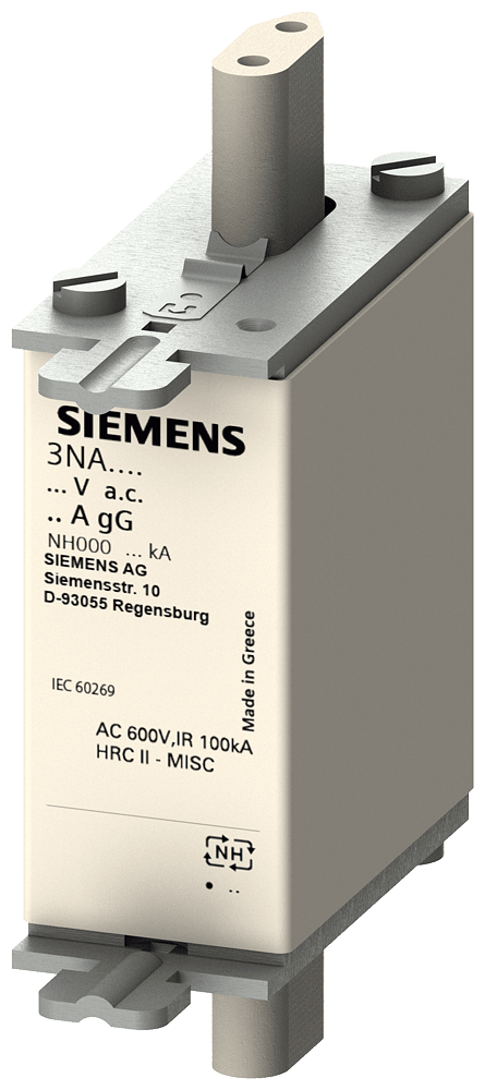 SIEMENS - Cartuccia fusibile NH, NH000, In: 50 A, gG, Un AC: 690 V, Un DC: 250 V 3NA38206KJ