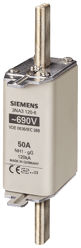 SIEMENS - Cartuccia fusibile NH, NH1, In: 50 A, gG, Un AC: 690 V, Un DC: 440 V 3NA31206