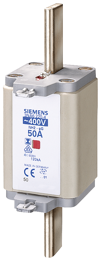 cartuccia fusibile NH, NH2, In: 355 A, gG, Un AC: 400 V, indicatore combinato, isolato attacchi Cartuccia fusibile NH SENTRON 3NA6 per la protezione selettiva dei cavi e dell'impianto. Il sistema di fusibili NH offre una protezione efficace per le persone, gli apparecchi e gli impianti grazie alla disinserzione sicura in caso di sovraccarico e cortocircuito. Segnalazioni combinate rivelano l'intervento del fusibile mediante un chiaro cambio di colore da rosso a bianco. Le cartucce fusibili NH sono disponibili da 2 A a 1250 A e nelle grandezze costruttive 000, 00, 0, 1, 2, 3, 4 e 4a. Le varianti con funzione di comunicazione e di misura nella grandezza costruttiva 2 da 80 A fino a 315 A. Dispositivi di protezione SENTRON - Una scelta sicura. Ora ancora più intelligenti.