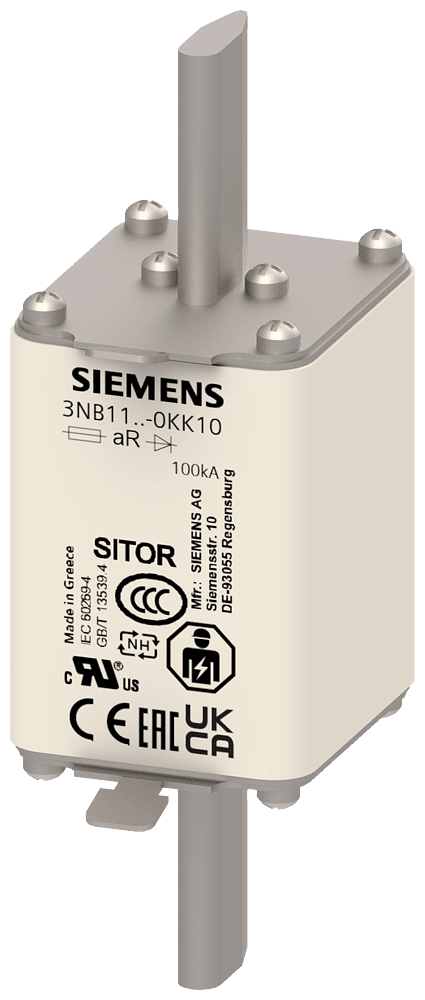 cartuccia fusibile SITOR grandezza costruttiva 1 100A aR DC 440V/600V VSI DC 500V UL @MBC 6xIn contatti a coltello I fusibili di protezione per semiconduttori SITOR 3NE, 3NC proteggono i semiconduttori dagli effetti di un cortocircuito. Il sistema di fusibili SITOR di Siemens, quale parte integrante importante dei componenti di protezione SENTRON per l'installazione elettrica, offre una protezione efficace per le persone, gli apparecchi e gli impianti grazie alla disinserzione sicura in caso di sovraccarico e cortocircuito. Il campo d'impiego comprende inoltre convertitori di frequenza con fusibili nel circuito d'ingresso e nel circuito intermedio DC nonché impianti di alimentazione di continuità UPS e softstarter per motori. I fusibili SITOR di Siemens si contraddistinguono soprattutto per le seguenti caratteristiche: 1. Caratteristica di disinserzione extrarapida rispetto ai comuni fusibili NH. 2. Protezione sicura anche dei semiconduttori di potenza in caso di cortocircuito. 3. Lo standard di qualità Siemens assicura una corrispondenza ottimale alla curva caratteristica. 4. I fusibili cilindrici SITOR sono omologati secondo IEC e UL nonché in gran parte anche secondo CCC e possono pertanto essere impiegati in tutto il mondo. 5. Adatti in parte per il montaggio su basi portafusibili NH, in sezionatori sottocarico a fusibili NH e sezionatori sottocarico con fusibili.