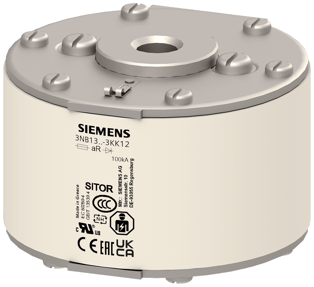 cartuccia fusibile SITOR grandezza costruttiva 3 400A aR DC 900V/1250V VSI DC 1000V UL @MBC 6xIn contatti a vite M12 73mm contatti piatti I fusibili di protezione per semiconduttori SITOR 3NE, 3NC proteggono i semiconduttori dagli effetti di un cortocircuito. Il sistema di fusibili SITOR di Siemens, quale parte integrante importante dei componenti di protezione SENTRON per l'installazione elettrica, offre una protezione efficace per le persone, gli apparecchi e gli impianti grazie alla disinserzione sicura in caso di sovraccarico e cortocircuito. Il campo d'impiego comprende inoltre convertitori di frequenza con fusibili nel circuito d'ingresso e nel circuito intermedio DC nonché impianti di alimentazione di continuità UPS e softstarter per motori. I fusibili SITOR di Siemens si contraddistinguono soprattutto per le seguenti caratteristiche: 1. Caratteristica di disinserzione extrarapida rispetto ai comuni fusibili NH. 2. Protezione sicura anche dei semiconduttori di potenza in caso di cortocircuito. 3. Lo standard di qualità Siemens assicura una corrispondenza ottimale alla curva caratteristica. 4. I fusibili cilindrici SITOR sono omologati secondo IEC e UL nonché in gran parte anche secondo CCC e possono pertanto essere impiegati in tutto il mondo. 5. Adatti in parte per il montaggio su basi portafusibili NH, in sezionatori sottocarico a fusibili NH e sezionatori sottocarico con fusibili.