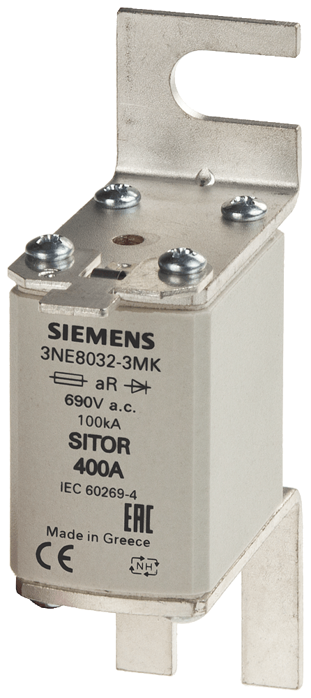 Cartuccia fusibile SITOR, con alette di fissaggio a vite, NH00, In: 100 A, gR, Un AC: 690 V, Un DC: 440 V, segnalatore di intervento frontale I fusibili di protezione per semiconduttori SITOR 3NE, 3NC proteggono i semiconduttori dagli effetti di un cortocircuito. Il sistema di fusibili SITOR di Siemens, quale parte integrante importante dei componenti di protezione SENTRON per l'installazione elettrica, offre una protezione efficace per le persone, gli apparecchi e gli impianti grazie alla disinserzione sicura in caso di sovraccarico e cortocircuito. Il campo d'impiego comprende inoltre convertitori di frequenza con fusibili nel circuito d'ingresso e nel circuito intermedio DC nonché impianti di alimentazione di continuità UPS e softstarter per motori. I fusibili SITOR di Siemens si contraddistinguono soprattutto per le seguenti caratteristiche: 1. Caratteristica di disinserzione extrarapida rispetto ai comuni fusibili NH. 2. Protezione sicura anche dei semiconduttori di potenza in caso di cortocircuito. 3. Lo standard di qualità Siemens assicura una corrispondenza ottimale alla curva caratteristica. 4. I fusibili cilindrici SITOR sono omologati secondo IEC e UL nonché in gran parte anche secondo CCC e possono pertanto essere impiegati in tutto il mondo. 5. Adatti in parte per il montaggio su basi portafusibili NH, in sezionatori sottocarico a fusibili NH e sezionatori sottocarico con fusibili.