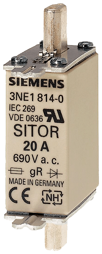 SIEMENS - Cartuccia fusibile SITOR, con contatti a coltello, NH000, In: 20 A, gS, Un AC: 690 V 3NE18140