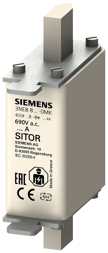 Cartuccia fusibile SITOR, con contatti a coltello, NH000, In: 6 A, gR, Un AC: 690 V, Un DC: 440 V, segnalatore di intervento frontale I fusibili di protezione per semiconduttori SITOR 3NE, 3NC proteggono i semiconduttori dagli effetti di un cortocircuito. Il sistema di fusibili SITOR di Siemens, quale parte integrante importante dei componenti di protezione SENTRON per l'installazione elettrica, offre una protezione efficace per le persone, gli apparecchi e gli impianti grazie alla disinserzione sicura in caso di sovraccarico e cortocircuito. Il campo d'impiego comprende inoltre convertitori di frequenza con fusibili nel circuito d'ingresso e nel circuito intermedio DC nonché impianti di alimentazione di continuità UPS e softstarter per motori. I fusibili SITOR di Siemens si contraddistinguono soprattutto per le seguenti caratteristiche: 1. Caratteristica di disinserzione extrarapida rispetto ai comuni fusibili NH. 2. Protezione sicura anche dei semiconduttori di potenza in caso di cortocircuito. 3. Lo standard di qualità Siemens assicura una corrispondenza ottimale alla curva caratteristica. 4. I fusibili cilindrici SITOR sono omologati secondo IEC e UL nonché in gran parte anche secondo CCC e possono pertanto essere impiegati in tutto il mondo. 5. Adatti in parte per il montaggio su basi portafusibili NH, in sezionatori sottocarico a fusibili NH e sezionatori sottocarico con fusibili.