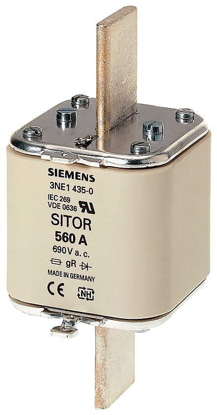 Cartuccia fusibile SITOR, con contatti a coltello, NH3, In: 560 A, gS, Un AC: 690 V, Un DC: 440 V, segnalatore di intervento frontale I fusibili di protezione per semiconduttori SITOR 3NE, 3NC proteggono i semiconduttori dagli effetti di un cortocircuito. Il sistema di fusibili SITOR di Siemens, quale parte integrante importante dei componenti di protezione SENTRON per l'installazione elettrica, offre una protezione efficace per le persone, gli apparecchi e gli impianti grazie alla disinserzione sicura in caso di sovraccarico e cortocircuito. Il campo d'impiego comprende inoltre convertitori di frequenza con fusibili nel circuito d'ingresso e nel circuito intermedio DC nonché impianti di alimentazione di continuità UPS e softstarter per motori. I fusibili SITOR di Siemens si contraddistinguono soprattutto per le seguenti caratteristiche: 1. Caratteristica di disinserzione extrarapida rispetto ai comuni fusibili NH. 2. Protezione sicura anche dei semiconduttori di potenza in caso di cortocircuito. 3. Lo standard di qualità Siemens assicura una corrispondenza ottimale alla curva caratteristica. 4. I fusibili cilindrici SITOR sono omologati secondo IEC e UL nonché in gran parte anche secondo CCC e possono pertanto essere impiegati in tutto il mondo. 5. Adatti in parte per il montaggio su basi portafusibili NH, in sezionatori sottocarico a fusibili NH e sezionatori sottocarico con fusibili.