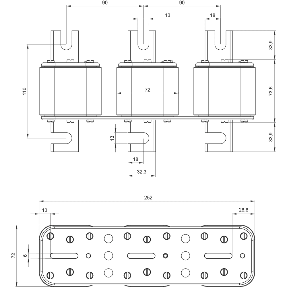 SIEMENS - Cartuccia fusibile SITOR, con contatti a coltello scanalati, 3 x NH3, In: 1900 A 3NB33621KK27