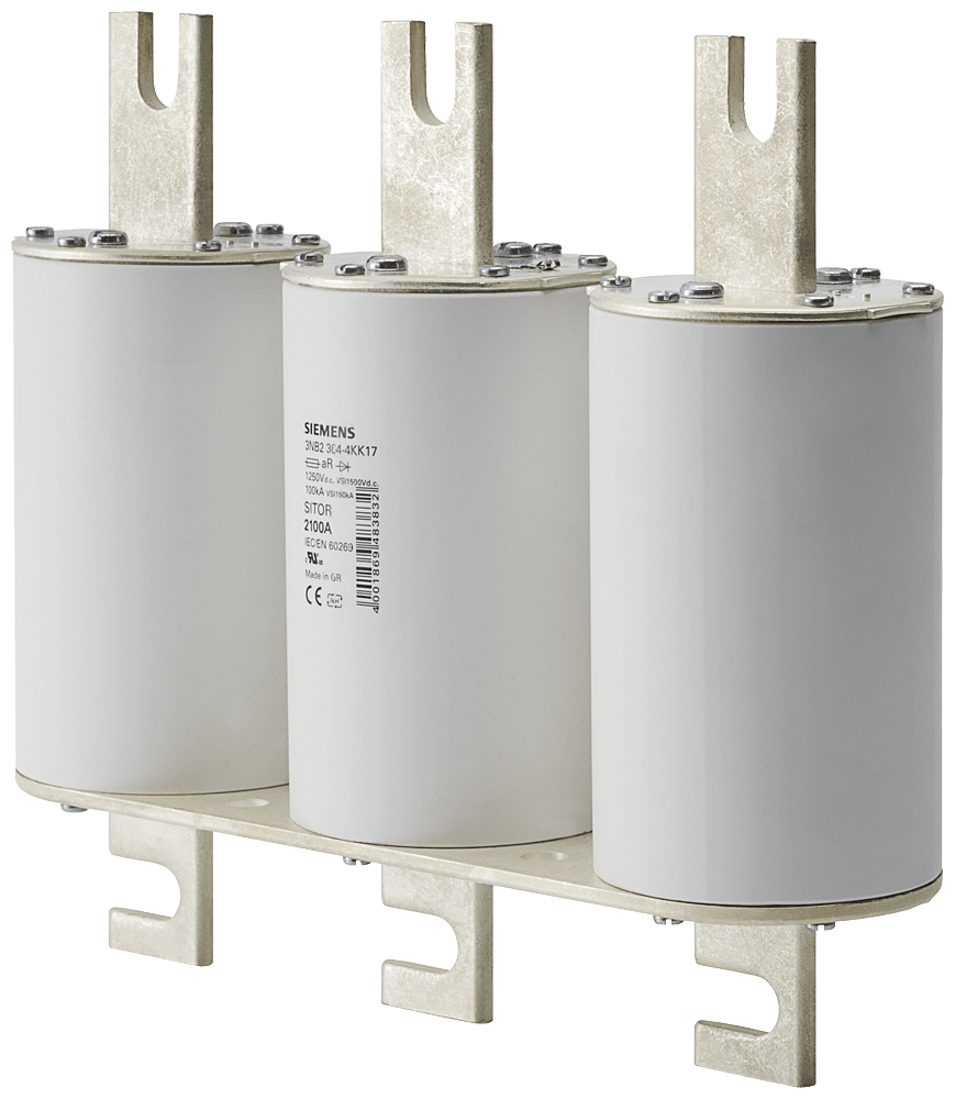 Cartuccia fusibile SITOR, con contatti a coltello intagliati, 3 x NH3L, In: 2100 A, aR, Un DC: 1250 V, segnalatore di intervento frontale I fusibili di protezione per semiconduttori SITOR 3NE, 3NC proteggono i semiconduttori dagli effetti di un cortocircuito. Il sistema di fusibili SITOR di Siemens, quale parte integrante importante dei componenti di protezione SENTRON per l'installazione elettrica, offre una protezione efficace per le persone, gli apparecchi e gli impianti grazie alla disinserzione sicura in caso di sovraccarico e cortocircuito. Il campo d'impiego comprende inoltre convertitori di frequenza con fusibili nel circuito d'ingresso e nel circuito intermedio DC nonché impianti di alimentazione di continuità UPS e softstarter per motori. I fusibili SITOR di Siemens si contraddistinguono soprattutto per le seguenti caratteristiche: 1. Caratteristica di disinserzione extrarapida rispetto ai comuni fusibili NH. 2. Protezione sicura anche dei semiconduttori di potenza in caso di cortocircuito. 3. Lo standard di qualità Siemens assicura una corrispondenza ottimale alla curva caratteristica. 4. I fusibili cilindrici SITOR sono omologati secondo IEC e UL nonché in gran parte anche secondo CCC e possono pertanto essere impiegati in tutto il mondo. 5. Adatti in parte per il montaggio su basi portafusibili NH, in sezionatori sottocarico a fusibili NH e sezionatori sottocarico con fusibili.