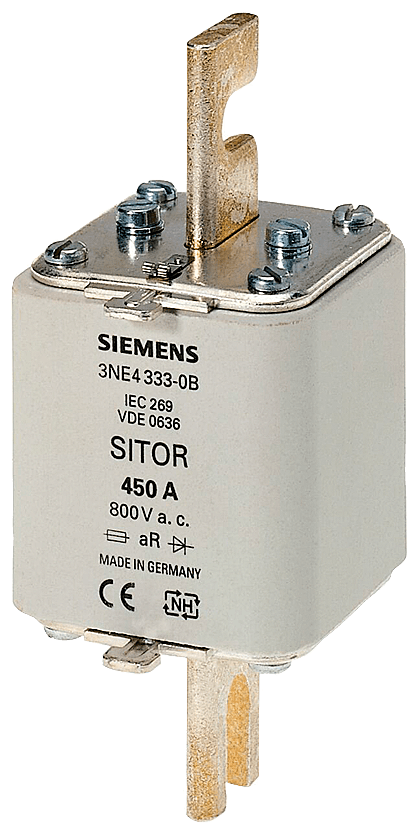 Cartuccia fusibile SITOR, con contatti a coltello intagliati, NH2, In: 250 A, aR, Un AC: 800 V, Un DC: 440 V, segnalatore di intervento frontale I fusibili di protezione per semiconduttori SITOR 3NE, 3NC proteggono i semiconduttori dagli effetti di un cortocircuito. Il sistema di fusibili SITOR di Siemens, quale parte integrante importante dei componenti di protezione SENTRON per l'installazione elettrica, offre una protezione efficace per le persone, gli apparecchi e gli impianti grazie alla disinserzione sicura in caso di sovraccarico e cortocircuito. Il campo d'impiego comprende inoltre convertitori di frequenza con fusibili nel circuito d'ingresso e nel circuito intermedio DC nonché impianti di alimentazione di continuità UPS e softstarter per motori. I fusibili SITOR di Siemens si contraddistinguono soprattutto per le seguenti caratteristiche: 1. Caratteristica di disinserzione extrarapida rispetto ai comuni fusibili NH. 2. Protezione sicura anche dei semiconduttori di potenza in caso di cortocircuito. 3. Lo standard di qualità Siemens assicura una corrispondenza ottimale alla curva caratteristica. 4. I fusibili cilindrici SITOR sono omologati secondo IEC e UL nonché in gran parte anche secondo CCC e possono pertanto essere impiegati in tutto il mondo. 5. Adatti in parte per il montaggio su basi portafusibili NH, in sezionatori sottocarico a fusibili NH e sezionatori sottocarico con fusibili.