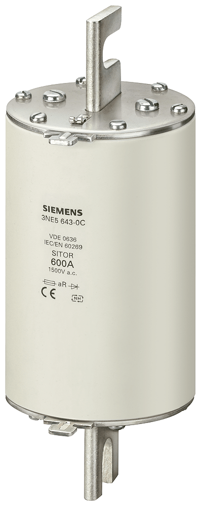 Cartuccia fusibile SITOR, con contatti a coltello intagliati, NH3, In: 600 A, aR, Un AC: 1500 V, Un DC: 900 V, segnalatore di intervento frontale I fusibili di protezione per semiconduttori SITOR 3NE, 3NC proteggono i semiconduttori dagli effetti di un cortocircuito. Il sistema di fusibili SITOR di Siemens, quale parte integrante importante dei componenti di protezione SENTRON per l'installazione elettrica, offre una protezione efficace per le persone, gli apparecchi e gli impianti grazie alla disinserzione sicura in caso di sovraccarico e cortocircuito. Il campo d'impiego comprende inoltre convertitori di frequenza con fusibili nel circuito d'ingresso e nel circuito intermedio DC nonché impianti di alimentazione di continuità UPS e softstarter per motori. I fusibili SITOR di Siemens si contraddistinguono soprattutto per le seguenti caratteristiche: 1. Caratteristica di disinserzione extrarapida rispetto ai comuni fusibili NH. 2. Protezione sicura anche dei semiconduttori di potenza in caso di cortocircuito. 3. Lo standard di qualità Siemens assicura una corrispondenza ottimale alla curva caratteristica. 4. I fusibili cilindrici SITOR sono omologati secondo IEC e UL nonché in gran parte anche secondo CCC e possono pertanto essere impiegati in tutto il mondo. 5. Adatti in parte per il montaggio su basi portafusibili NH, in sezionatori sottocarico a fusibili NH e sezionatori sottocarico con fusibili.