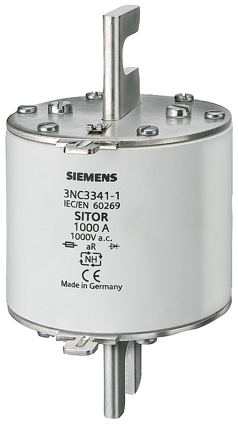 Cartuccia fusibile SITOR, con contatti a coltello intagliati, NH3, In: 630 A, aR, Un AC: 1250 V, Un DC: 440 V, segnalatore di intervento frontale I fusibili di protezione per semiconduttori SITOR 3NE, 3NC proteggono i semiconduttori dagli effetti di un cortocircuito. Il sistema di fusibili SITOR di Siemens, quale parte integrante importante dei componenti di protezione SENTRON per l'installazione elettrica, offre una protezione efficace per le persone, gli apparecchi e gli impianti grazie alla disinserzione sicura in caso di sovraccarico e cortocircuito. Il campo d'impiego comprende inoltre convertitori di frequenza con fusibili nel circuito d'ingresso e nel circuito intermedio DC nonché impianti di alimentazione di continuità UPS e softstarter per motori. I fusibili SITOR di Siemens si contraddistinguono soprattutto per le seguenti caratteristiche: 1. Caratteristica di disinserzione extrarapida rispetto ai comuni fusibili NH. 2. Protezione sicura anche dei semiconduttori di potenza in caso di cortocircuito. 3. Lo standard di qualità Siemens assicura una corrispondenza ottimale alla curva caratteristica. 4. I fusibili cilindrici SITOR sono omologati secondo IEC e UL nonché in gran parte anche secondo CCC e possono pertanto essere impiegati in tutto il mondo. 5. Adatti in parte per il montaggio su basi portafusibili NH, in sezionatori sottocarico a fusibili NH e sezionatori sottocarico con fusibili.