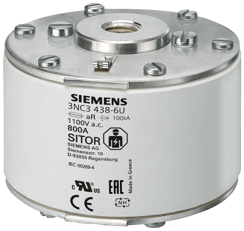 Cartuccia fusibile SITOR, con filetto interno bilaterale, NH3, In: 900 A, aR, Un AC: 690 V, Un DC: 440 V, segnalatore di intervento frontale I fusibili di protezione per semiconduttori SITOR 3NE, 3NC proteggono i semiconduttori dagli effetti di un cortocircuito. Il sistema di fusibili SITOR di Siemens, quale parte integrante importante dei componenti di protezione SENTRON per l'installazione elettrica, offre una protezione efficace per le persone, gli apparecchi e gli impianti grazie alla disinserzione sicura in caso di sovraccarico e cortocircuito. Il campo d'impiego comprende inoltre convertitori di frequenza con fusibili nel circuito d'ingresso e nel circuito intermedio DC nonché impianti di alimentazione di continuità UPS e softstarter per motori. I fusibili SITOR di Siemens si contraddistinguono soprattutto per le seguenti caratteristiche: 1. Caratteristica di disinserzione extrarapida rispetto ai comuni fusibili NH. 2. Protezione sicura anche dei semiconduttori di potenza in caso di cortocircuito. 3. Lo standard di qualità Siemens assicura una corrispondenza ottimale alla curva caratteristica. 4. I fusibili cilindrici SITOR sono omologati secondo IEC e UL nonché in gran parte anche secondo CCC e possono pertanto essere impiegati in tutto il mondo. 5. Adatti in parte per il montaggio su basi portafusibili NH, in sezionatori sottocarico a fusibili NH e sezionatori sottocarico con fusibili.