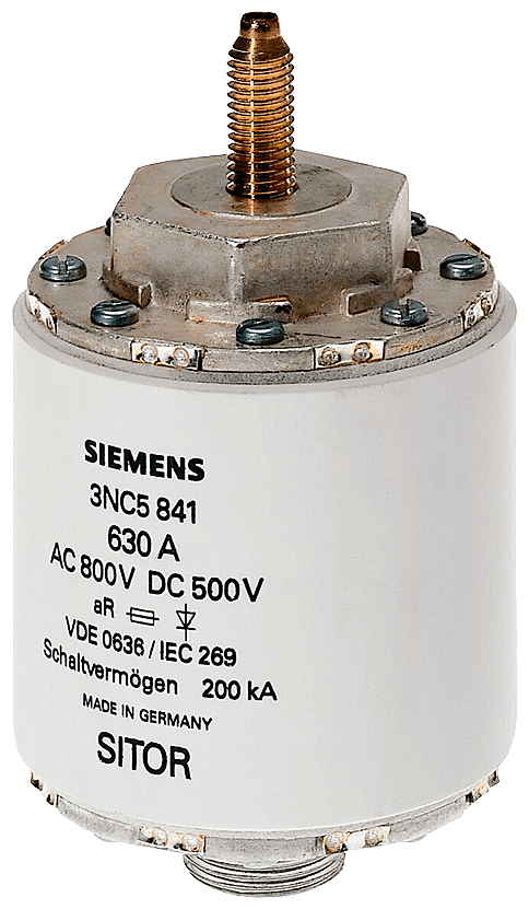 Cartuccia fusibile SITOR, con filetto interno e attacco a bullone, In: 600 A, aR, Un AC: 1000 V, Un DC: 440 V, segnalatore di intervento frontale I fusibili di protezione per semiconduttori SITOR 3NE, 3NC proteggono i semiconduttori dagli effetti di un cortocircuito. Il sistema di fusibili SITOR di Siemens, quale parte integrante importante dei componenti di protezione SENTRON per l'installazione elettrica, offre una protezione efficace per le persone, gli apparecchi e gli impianti grazie alla disinserzione sicura in caso di sovraccarico e cortocircuito. Il campo d'impiego comprende inoltre convertitori di frequenza con fusibili nel circuito d'ingresso e nel circuito intermedio DC nonché impianti di alimentazione di continuità UPS e softstarter per motori. I fusibili SITOR di Siemens si contraddistinguono soprattutto per le seguenti caratteristiche: 1. Caratteristica di disinserzione extrarapida rispetto ai comuni fusibili NH. 2. Protezione sicura anche dei semiconduttori di potenza in caso di cortocircuito. 3. Lo standard di qualità Siemens assicura una corrispondenza ottimale alla curva caratteristica. 4. I fusibili cilindrici SITOR sono omologati secondo IEC e UL nonché in gran parte anche secondo CCC e possono pertanto essere impiegati in tutto il mondo. 5. Adatti in parte per il montaggio su basi portafusibili NH, in sezionatori sottocarico a fusibili NH e sezionatori sottocarico con fusibili.