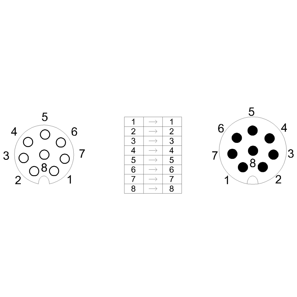 aaccessori: cavo di collegamento 1m, presa M12 a 8 poli ad una estremità e connettore M12 a 8 poli sull'altra estremità. Per il collegamento di interruttore di sicurezza con blocco di ritenuta 3SE5324*, arresto di emergenza, custodia 3SU1 con connettore M12 a 8 poli per ad es. SIMATIC ET200eco PN mediante cavo a Y 6ES7194-6KC00-0XA0 o per 8WD46 Safety is a SIRIUS business.