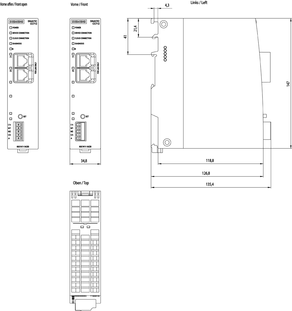 SIEMENS - Cloud Connect 7, CC712 IoT Gateway, colleg. di appar. S7/Modbus a Cloud Services 6GK14111AC00