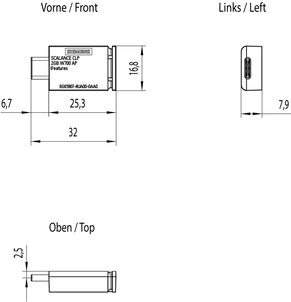 SCALANCE CLP 2GB W700 AP iFeatures. Supporto di memoria rimovibile per l'attivazione di iFeatures e funzioni aggiuntive negli SCALANCE W Access Point e client. Utilizzabile per la semplice sostituzione degli apparecchi in caso di guasto, per la memorizzazione di dati di progettazione, e firmware, utilizzabile nei seguenti prodotti con posto connettore CLP: SCALANCE W700 Wi-Fi 5 e Wi-Fi 6. SCALANCE CLP 2GB W700 AP iFeatures