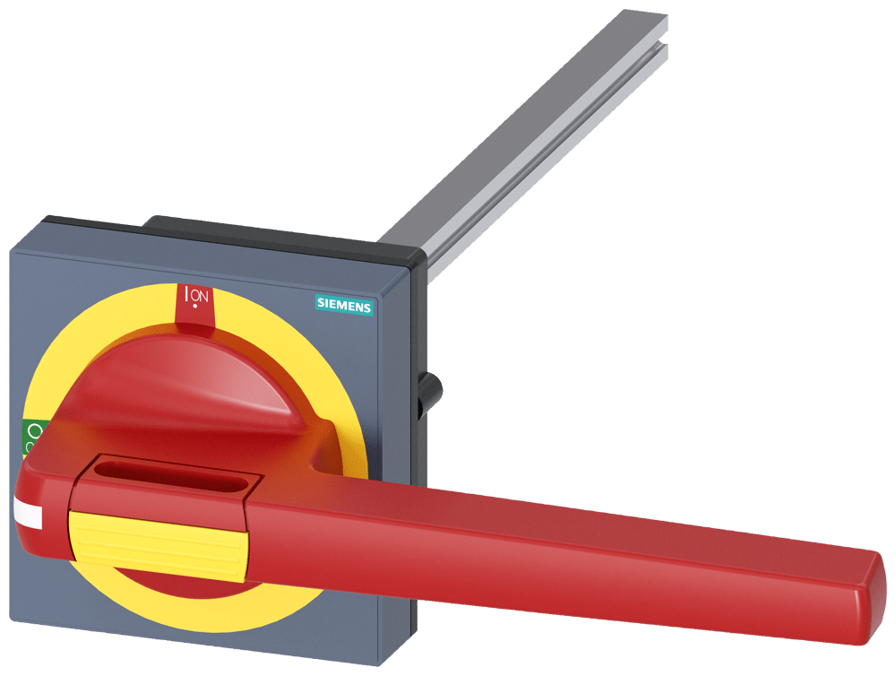comando rotativo bloccoporta emergenza con compensazione della tolleranza dimensioni 100 x 100, albero 12 x 12, 300mm, 0-I, apparecchio completo operatore grandezza 200mm accessori per 3KD grand. costr. 5, 3KF grand. costr. 5 Comandi manuali per un comodo utilizzo dell'interruttore automatico scatolato 3VA. Disponibilità come comando rotativo frontale, per porta e parete laterale con diverse possibilità di chiusura a chiave e con interblocco Le manopole sono disponibili nelle varianti standard e ARRESTO DI EMERGENZA, ciascuna con o senza kit di illuminazione. Interruttori automatici scatolati SENTRON 3VA - Un sistema. Per tutte le applicazioni.