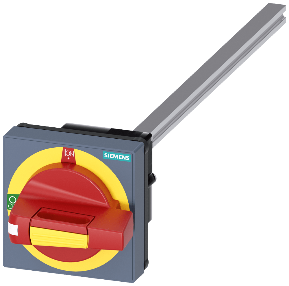 comando rotativo bloccoporta emergenza con compensazione della tolleranza dimensioni 75 x 75, albero 8 x 8, 300mm, Test-0-1, apparecchio completo operatore grandezza 45mm accessori per 3KD grand. costr. 1 e 2, 3KF grand. costr. 1 Comandi manuali per un comodo utilizzo dell'interruttore automatico scatolato 3VA. Disponibilità come comando rotativo frontale, per porta e parete laterale con diverse possibilità di chiusura a chiave e con interblocco Le manopole sono disponibili nelle varianti standard e ARRESTO DI EMERGENZA, ciascuna con o senza kit di illuminazione. Interruttori automatici scatolati SENTRON 3VA - Un sistema. Per tutte le applicazioni.