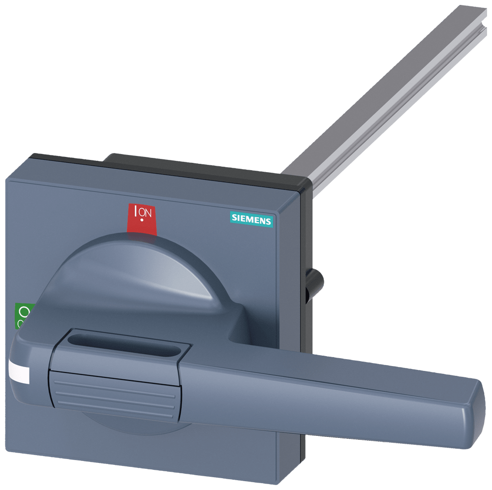 comando rotativo bloccoporta standard con compensazione della tolleranza dimensioni 100 x 100, albero 10 x 10, 300 mm, test-0-I, apparecchio completo operatore grandezza 140 mm accessori per 3KD grand. costr. 4, 3KF grand. costr. 4 Comandi manuali per un comodo utilizzo dell'interruttore automatico scatolato 3VA. Disponibilità come comando rotativo frontale, per porta e parete laterale con diverse possibilità di chiusura a chiave e con interblocco Le manopole sono disponibili nelle varianti standard e ARRESTO DI EMERGENZA, ciascuna con o senza kit di illuminazione. Interruttori automatici scatolati SENTRON 3VA - Un sistema. Per tutte le applicazioni.