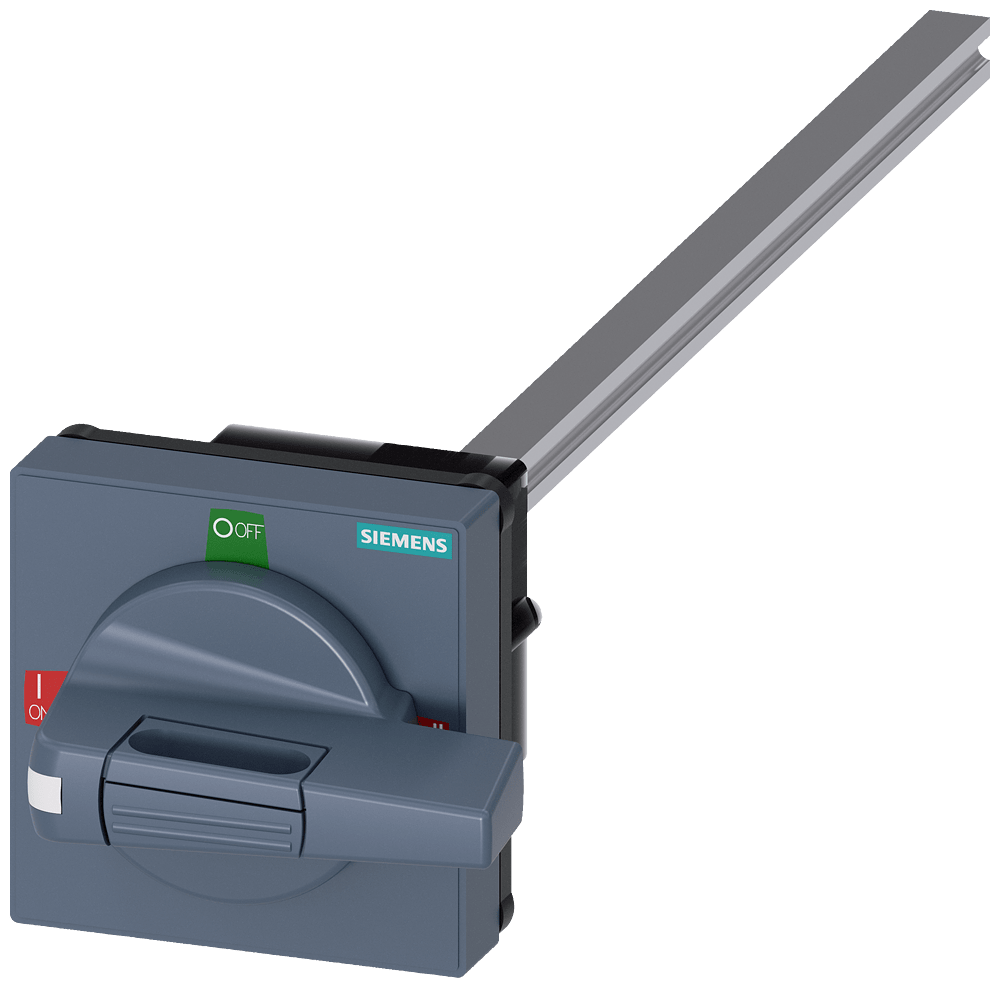 comando rotativo bloccoporta standard con compensazione della tolleranza dimensioni 75 x 75, albero 8 x 8, 300mm, I-0-II, apparecchio completo operatore grandezza 55mm accessori per 3KC0 grand. costr. 1 e 2 Comandi manuali per un comodo utilizzo dell'interruttore automatico scatolato 3VA. Disponibilità come comando rotativo frontale, per porta e parete laterale con diverse possibilità di chiusura a chiave e con interblocco Le manopole sono disponibili nelle varianti standard e ARRESTO DI EMERGENZA, ciascuna con o senza kit di illuminazione. Interruttori automatici scatolati SENTRON 3VA - Un sistema. Per tutte le applicazioni.