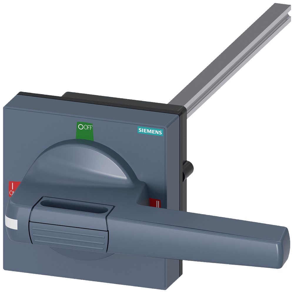 comando rotativo bloccoporta standard con compensazione della tolleranza dimensioni 100 x 100, albero 10 x 10, 300mm, I-0-II, apparecchio completo operatore grandezza 140mm accessori per 3KC0 grand. costr. 4 Comandi manuali per un comodo utilizzo dell'interruttore automatico scatolato 3VA. Disponibilità come comando rotativo frontale, per porta e parete laterale con diverse possibilità di chiusura a chiave e con interblocco Le manopole sono disponibili nelle varianti standard e ARRESTO DI EMERGENZA, ciascuna con o senza kit di illuminazione. Interruttori automatici scatolati SENTRON 3VA - Un sistema. Per tutte le applicazioni.
