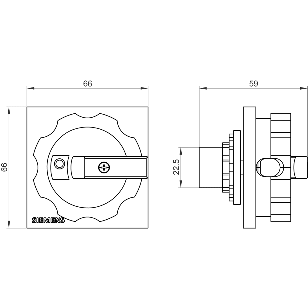 SIEMENS - Comando rotativo, leva di azionamento nera, per fissaggio frontale su foro centrale 3LD92241D