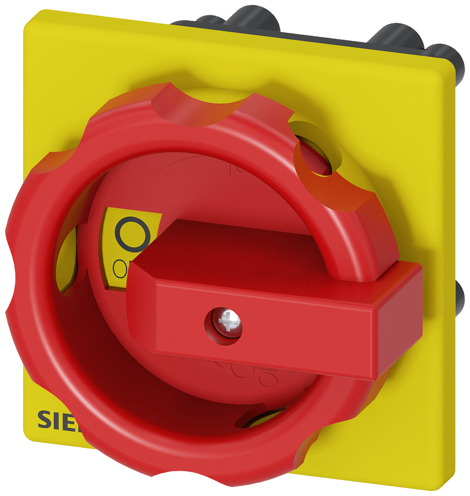 comando rotativo, rosso/giallo 66x66 mm, fissaggio frontale fissaggio su foro centrale 22,5 mm, accessori per sezionatore sottocarico 3LD3 Interruttori principali e di OFF di emergenza SENTRON 3LD3 per la disinserzione sicura dei carichi in numerosi settori, ad es. per motori trifase, impianti di climatizzazione e ventilazione, quadri di comando e elettrici, in particolare per piccole macchine quali segatrici, compressori, pompe, betoniere, trapani, fresatrici o macchine per la lavorazione del legno. Struttura modulare, montaggio semplice e rapido di blocchetti di contatti ausiliari, morsetto PE/N o 4º polo. Ottimale sezionamento dalla rete da 16 A a 63 A grazie alla lucchettabilità del comando rotativo. Versatilità d'impiego grazie alle approvazioni internazionali. Una grandezza costruttiva meccanica per cinque grandezze costruttive elettriche. Gli interruttori principali e gli interruttori di OFF di emergenza 3LD sono disponibili in molteplici varianti per il fissaggio frontale, su piastra di montaggio, su guida DIN o montaggio in quadro di distribuzione, a scelta con comando rotativo bloccoporta diretto o rinviato. I 3LD2 sono disponibili anche con varianti per applicazioni in corrente continua. Interruttori principali e di OFF di emergenza 3LD - Sicurezza integrale per utenti e sistemi.