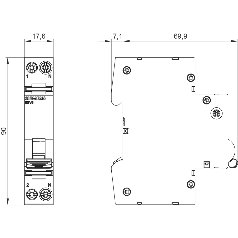 SIEMENS - Combinazione Arc Fault Detection Device-interruttore automatico 230 V, 6 kA, 1+N, B, 20 A compatta (1 UM) 5SV60166KK20