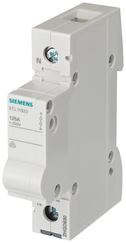 conduttore di neutro congiuntore blu a 1 polo Interruttori ON/OFF per montaggio su guida DIN per il comando di impianti elettrici. Gli Interruttori ON/OFF 5TL1 sono impiegati per il comando di luci, motori ed altre apparecchiature elettriche. Le correnti nominali vanno a 32 A a 125 A. Le varianti di apparecchio 5TL1 sono impiegabili inoltre come sezionatori sottocarico secondo EN 60947-1. Gli apparecchi possono essere utilizzati secondo EN 60204-1 come interruttori principali per il sezionamento o la messa fuori tensione di impianti. Sia che si trattidi esigenze applicative nell'infrastruttura o nell'industria - Siemens offre apparecchi d manovra magnetotermici per qualsiasi campo d'impiego. Grazie al nuovo design l'interruttore ON/OF 5TL1 può essere perfettamente integrato dal punto di vista ottico nella serie degli interruttori differenziali e degli interruttori magnetotermici. Gli apparecchi di manovra di Siemens si contraddistinguono soprattutto per le seguenti caratteristiche: 1 Elevata sicurezza di funzionamento e disponibilità degli impianti grazie all'inserzione e alla disinserzione separata del circuito interessato. 2. Sicurezza affidabile durante l'installazione grazie alla protezione avvolgente e alla protezione contro i contatti accidentali come standard di serie. 3. Rimozione senza attrezzi dalla guida o dalla struttura di sbarre collettrici grazie al comodo cursore di sgancio manuale. 4. Indicazione della posizione di commutazione chiaramente visibile. 5. Possibilità d'impiego come sezionatore sottocarico e interruttore principale. 6. Gli interruttori ON e OFF sono conformi alle norme EN 60947-1 e EN 60204-1. 7. Tecnica ottimale per la vostra sicurezza - solo da Siemens.
