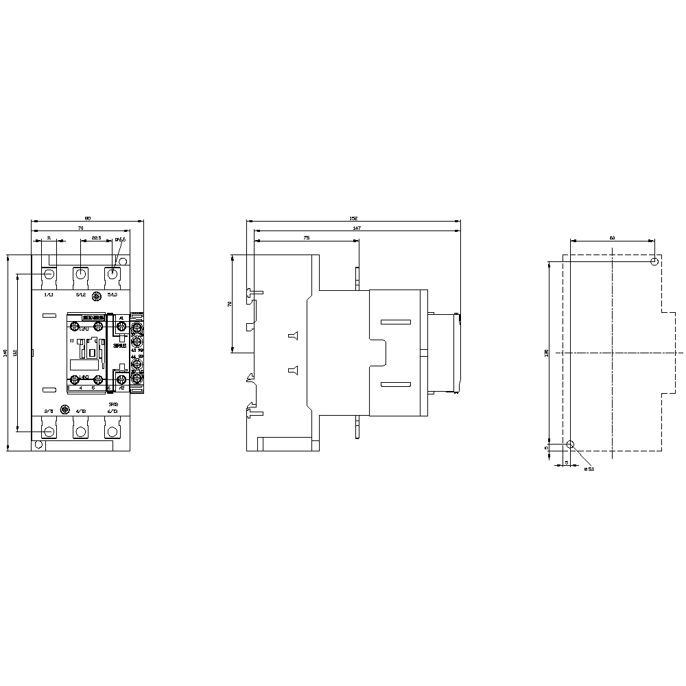 SIEMENS - Contattore, AC-1, 140 A/690 V/40 °C, a 3 poli, AC 480 V/60 Hz, 2NO+2NC 3RT24466AV66