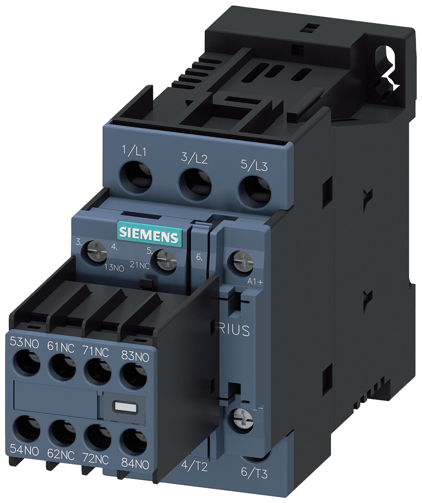 SIEMENS - Contattore, AC-3e, 25 A/11 kW/400 V, a 3 poli, DC 24 V, 3NO+3NC, morsetti a vite 3RT20261FB480ME2