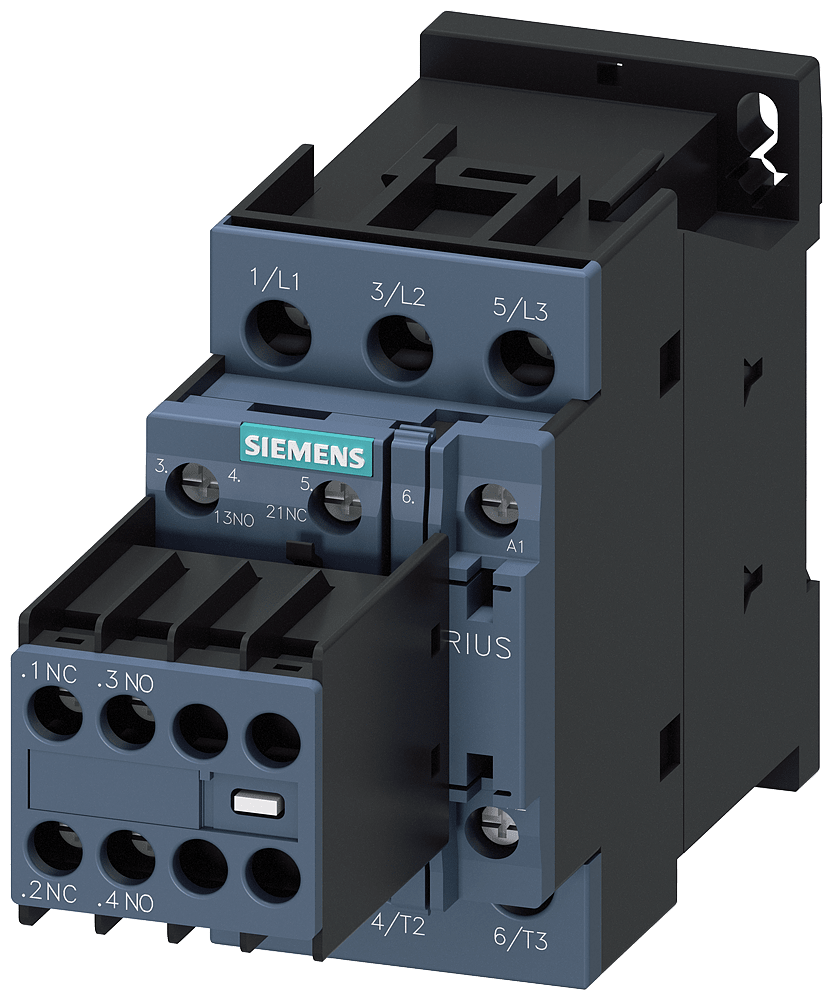 SIEMENS - Contattore, AC-3e, 38 A/18,5 kW/400 V, a 3 poli, AC 110 V/50 Hz, 2NO+2NC, morsetti a vite 3RT20281AF04