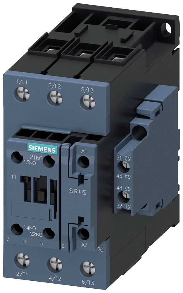 SIEMENS - Contattore, AC-3e, 65 A/30 kW/400 V, a 3 poli, AC/DC 20 ... 33 V, 2NO+2NC, morsetti a vite 3RT20371NB36