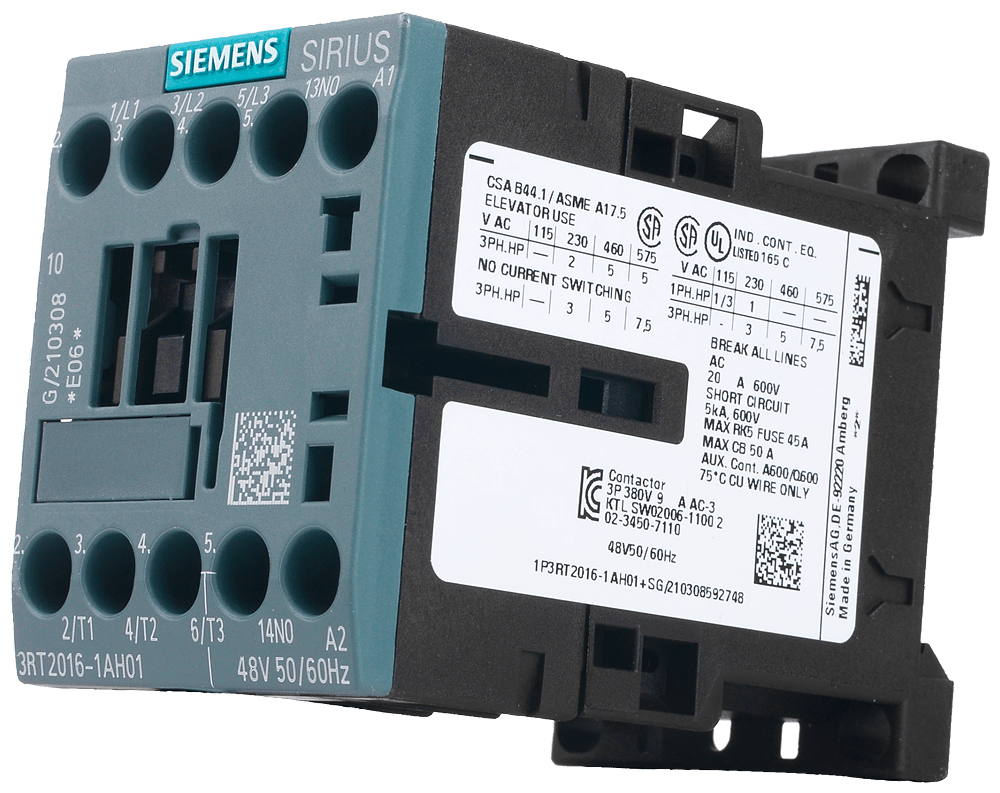 SIEMENS - Contattore, AC-3e, 9 A/4 kW/400 V, a 3 poli, AC 48 V, 50/60 Hz, 1NO, morsetti a vite 3RT20161AH01