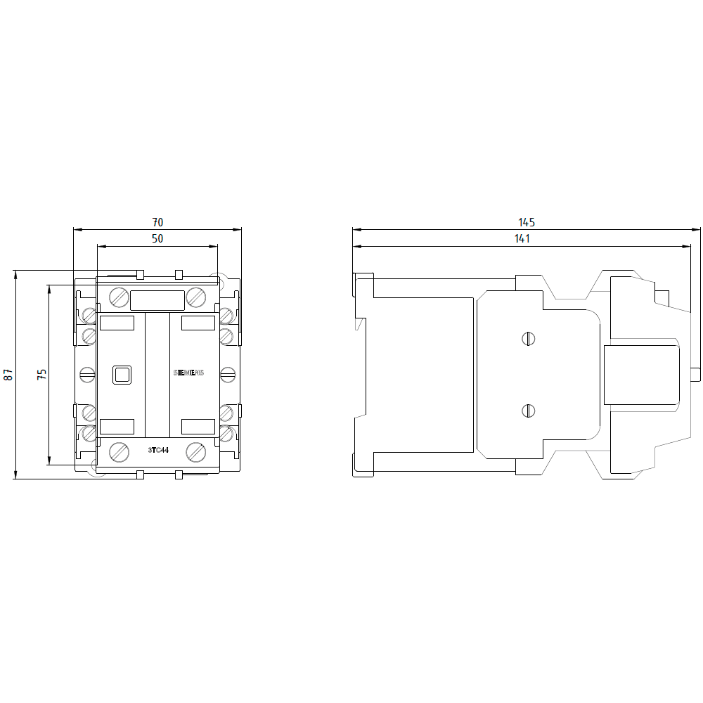 SIEMENS - Contattore gr. costr. 2, a 2 poli DC-3 e 5, 32 A, blocchetto di contatti ausiliari 22 (2NO+2NC), comando in AC 3TC44175KB4