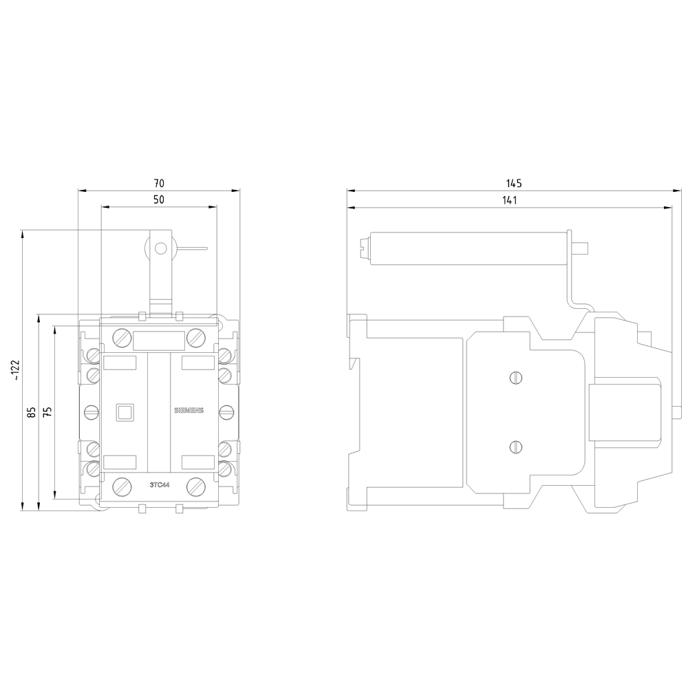 SIEMENS - Contattore gr. costr. 2, a 2 poli DC-3 e 5, 32 A, blocchetto di contatti ausiliari 22 (2NO+2NC), comando in DC DC 36 V 3TC44170CV4