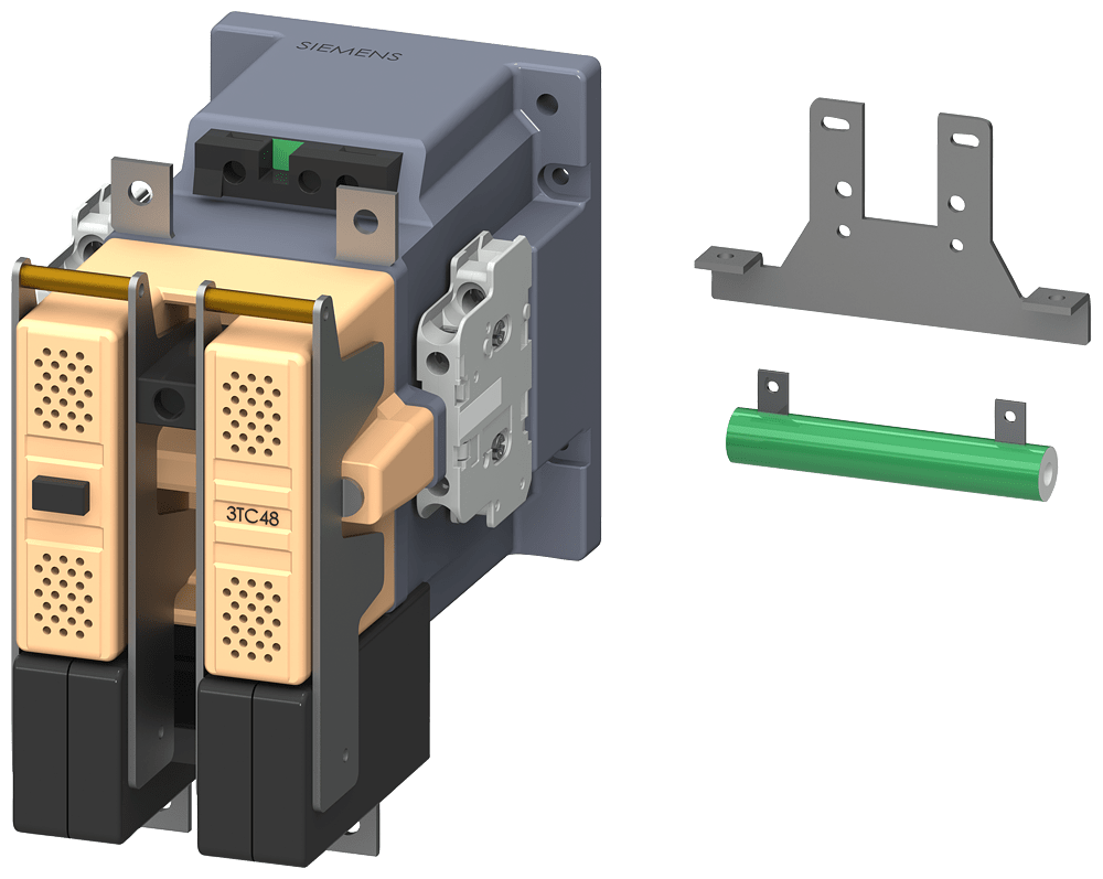 SIEMENS - Contattore gr. costr. 4, a 2 poli DC-3 e 5, 75 A, blocchetto di contatti ausiliari 21 (2NO+1NC), comando in AC DC 24 V 3TC48170CB4