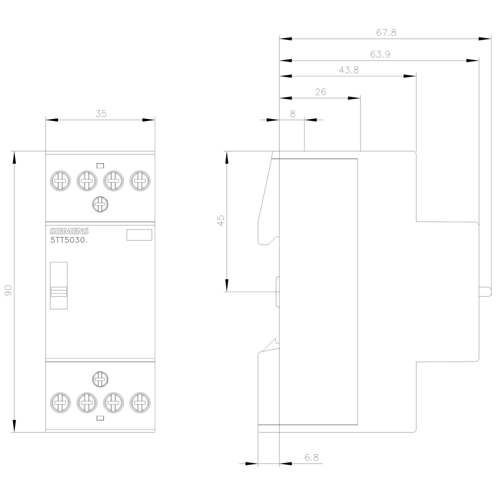 SIEMENS - Contattore INSTA 0/1-automatico con 4 contatti NO, contatto per AC 230 V, 400 V 25 A 5TT58308