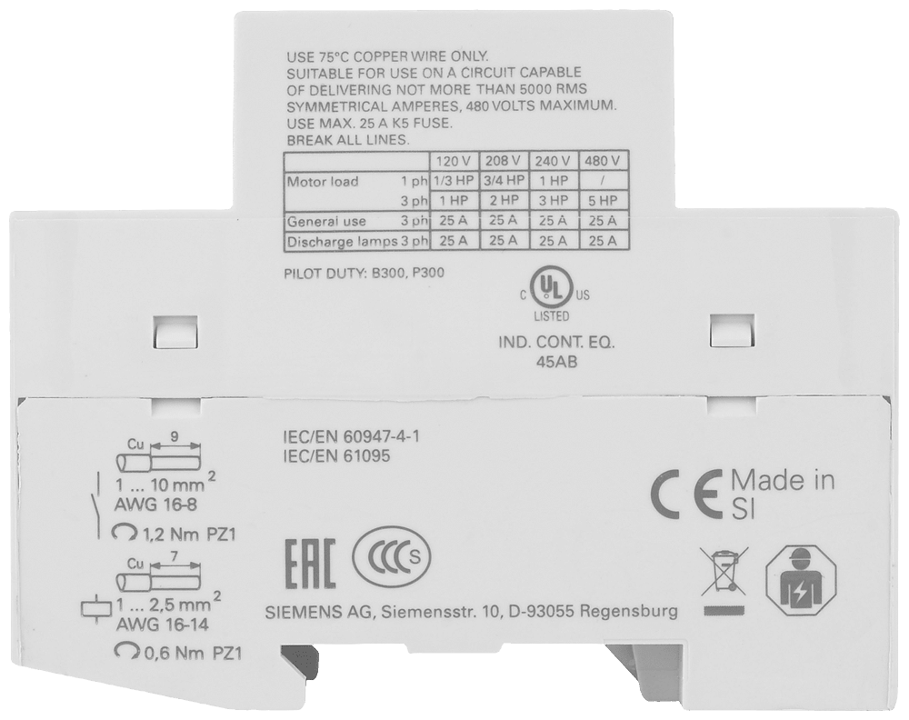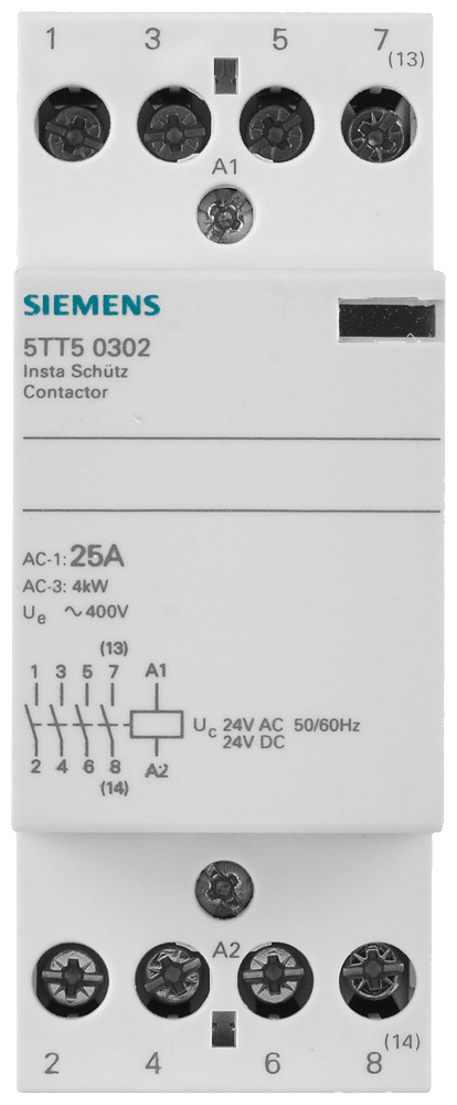 SIEMENS - Contattore INSTA con 4 contatti NO, contatto per AC 230 V, 400 V 25 A comando in AC/DC 5TT50302