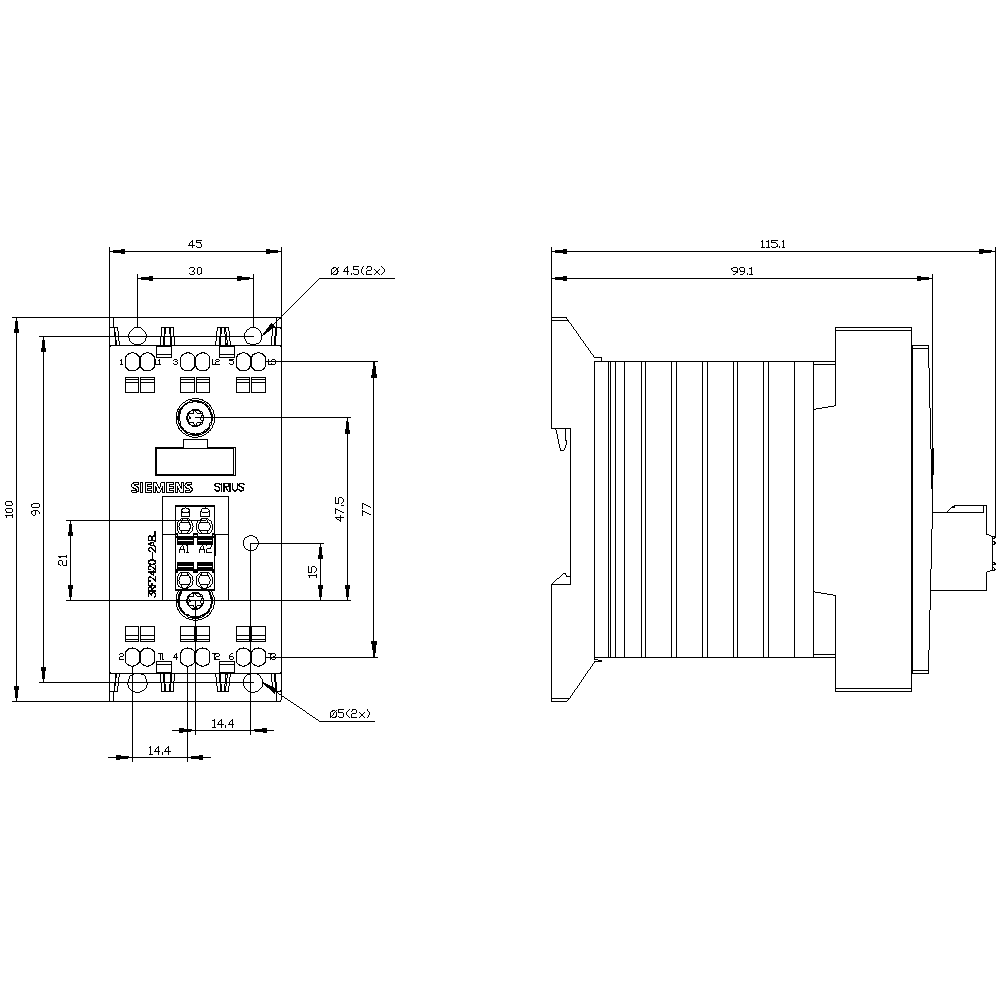 SIEMENS - Contattore statico 3RF2, trifase AC-51 20 A 48 ... 600 V/AC 230 V, controllato a 2 fasi 3RF24202AB55
