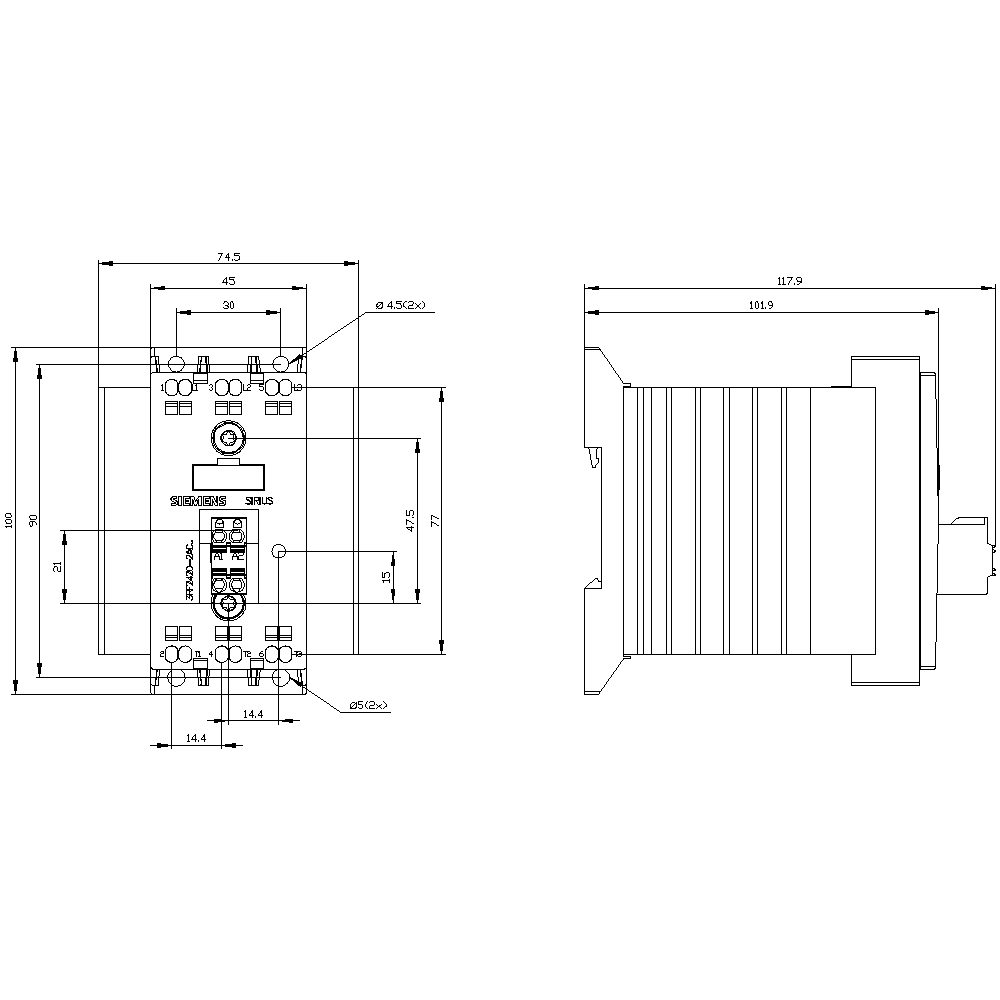 SIEMENS - Contattore statico 3RF2, trifase AC-51 20 A 48 ... 600 V/DC 4 ... 30 V, controllato a 3 fasi 3RF24202AC45