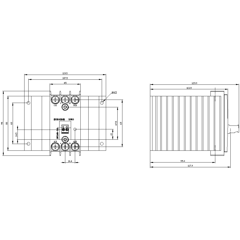 SIEMENS - Contattore statico 3RF2, trifase AC-51 50 A 48 ... 600 V/AC 230 V, controllato a 2 fasi 3RF24503AB55