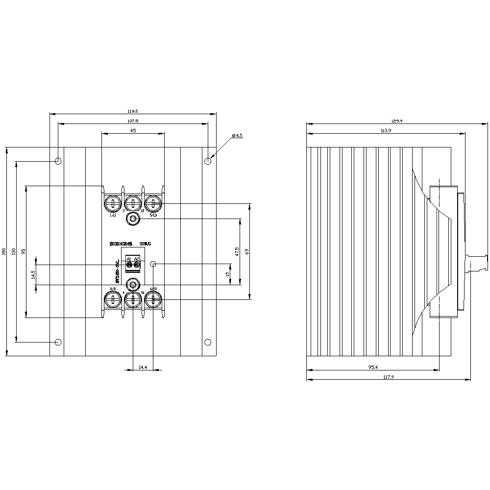 SIEMENS - Contattore statico 3RF2, trifase AC-51 50 A 48 ... 600 V/DC 4 ... 30 V, controllato a 3 fasi 3RF24503AC45