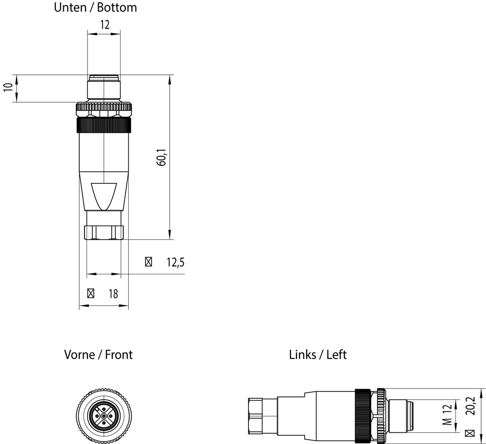 Control M12 Plug PRO; connettore confezionabile sul campo per il collegamento di sensori/attuatori IO-Link; a 5 poli; A-coded; 1 pezzo. SIMATIC NETControl M12 Plug PRO