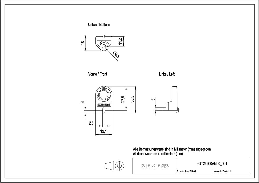 SIEMENS - Custodia dangolo RF300 ISO / RF200 per MDS D160, MDS D460, MDS D560 6GT26900AN00