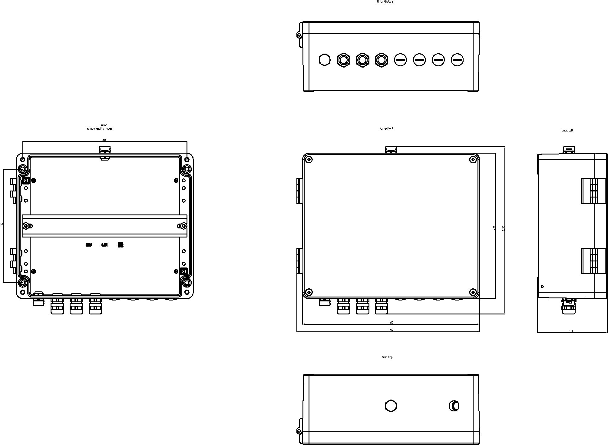 custodia in alluminio grado di protezione IP68; adatta per SIMATIC RTU3000C; campo di temperatura -40 ... +80 °C; coperchio con viti pin-Torx; 7 passaggi per cavi e passaggio per antenna radiomobile predisposti; pressacavi a vite e tappi di chiusura (nel numero necessario) da ordinare separatamente.