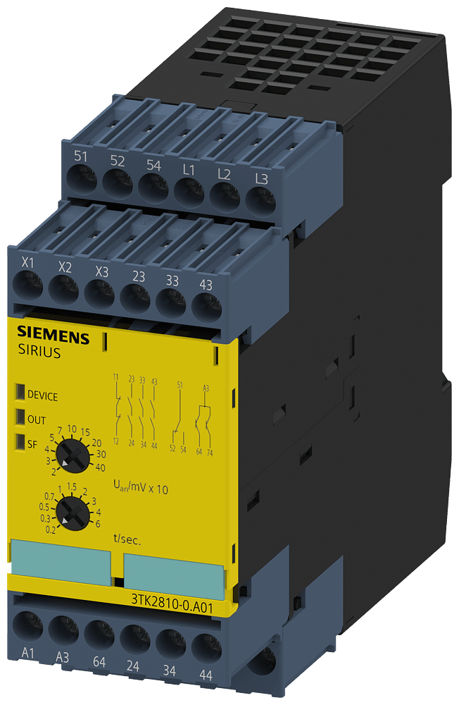 SIEMENS - Dispositivo di sicurezza, sorveglianza di stato di fermo orientata alla sicurezza, AC 400 V 3TK28100JA01