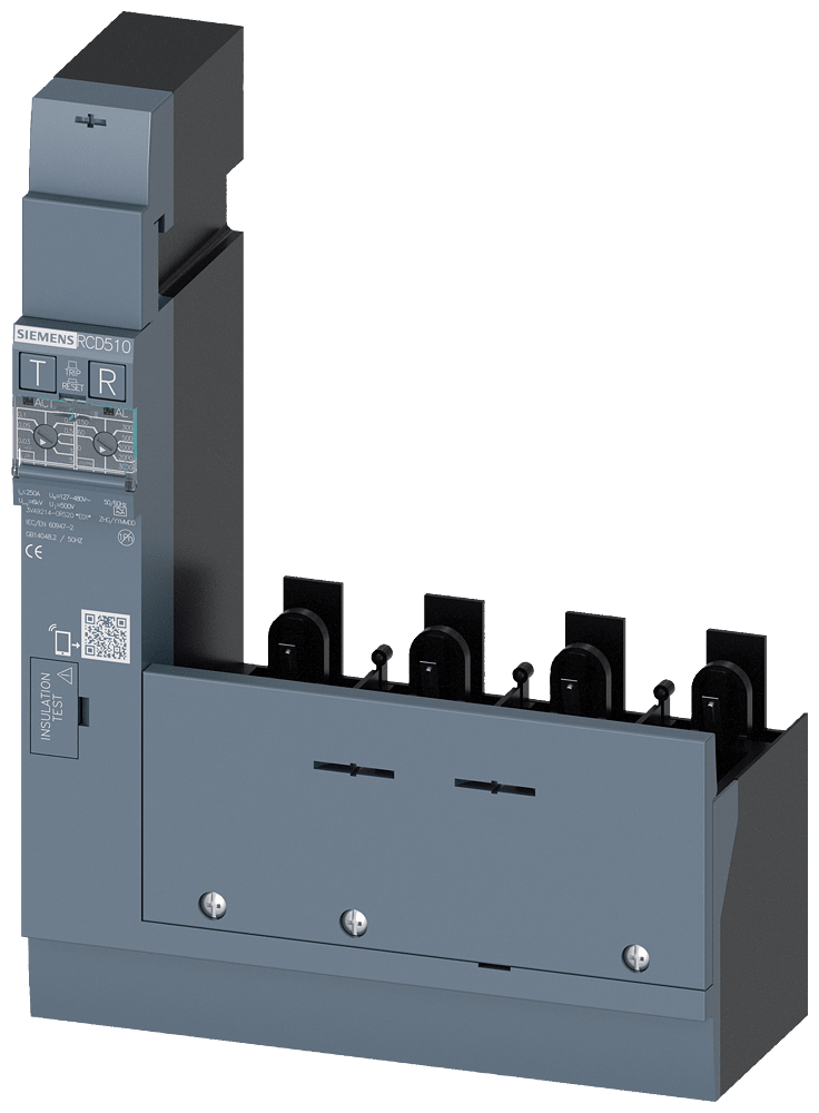 dispositivo di protezione differenziale RCD510 Basic RCD Tipo A montato lateralmente corrente di guasto nominale 0,03 ... 5 A a 50/60 Hz tempo regolabile 0 ... 3000 ms a 4 poli In=250A Ue=127-480 V Accessori per: 3VA1 con collegamento con morsetti Interruttori automatici scatolati SENTRON 3VA - un sistema. Per tutte le applicazioni.