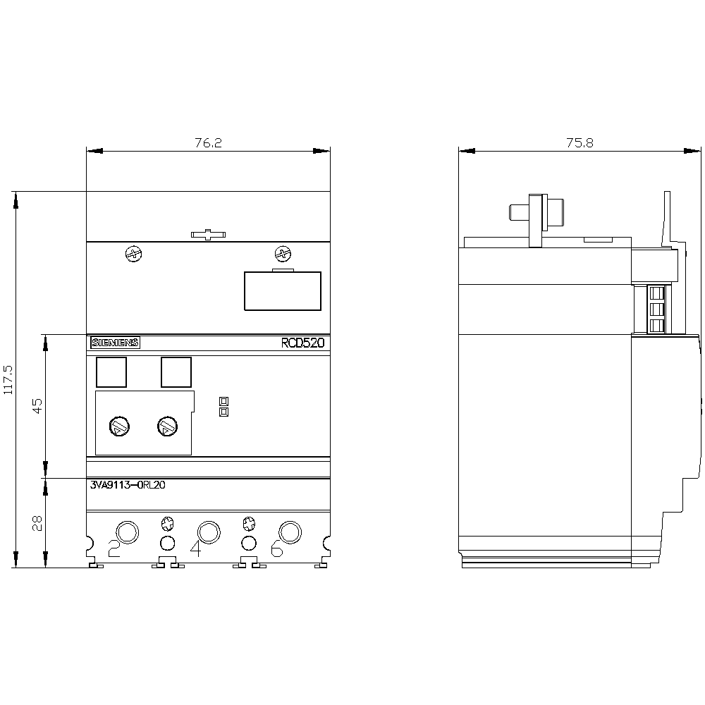 SIEMENS - Dispositivo differenziale RCD520 Basic RCD tipo A montato in basso