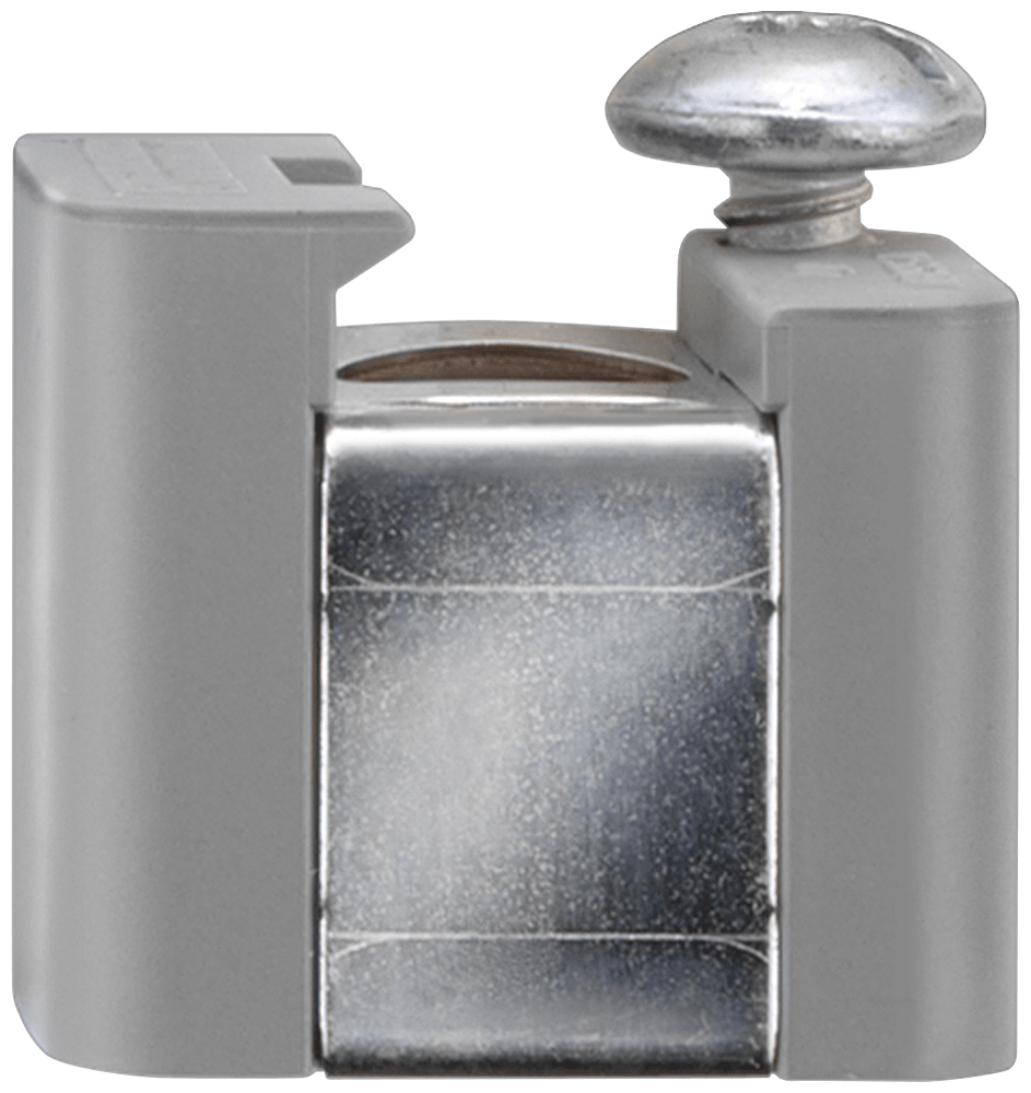 elemento di supporto con vite di fissaggio, utilizzabile a scelta per sbarra collettrice 3x 10mm oppure 6x 6mm, grigio